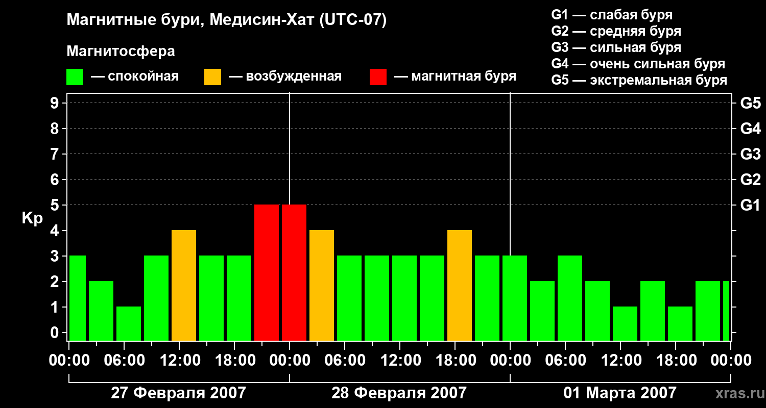 Магнитные бури в Медисин-Хате — 1 марта 2007 года