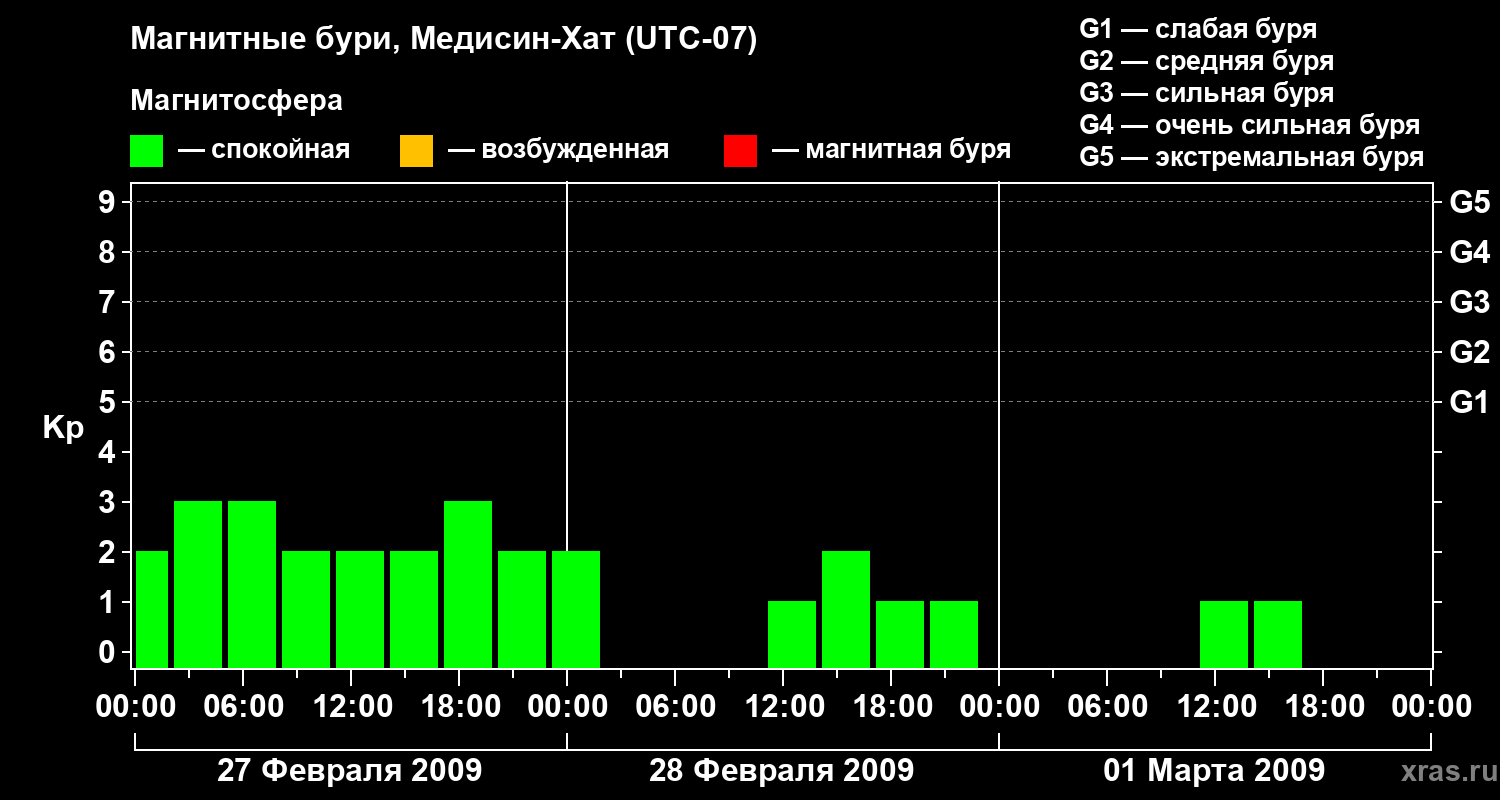 Магнитные бури в Медисин-Хате — 1 марта 2009 года