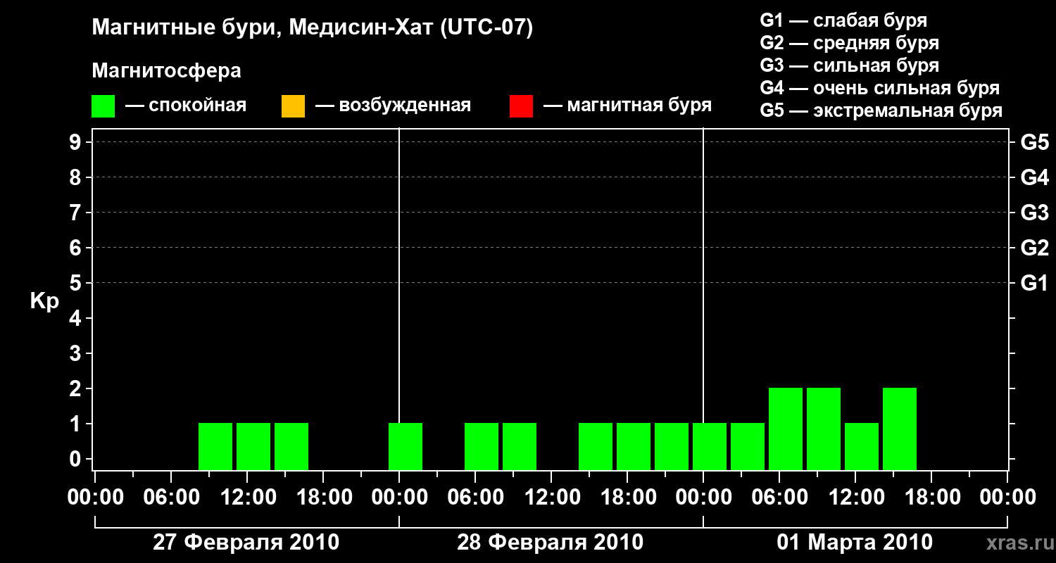 Магнитные бури в Медисин-Хате — 1 марта 2010 года