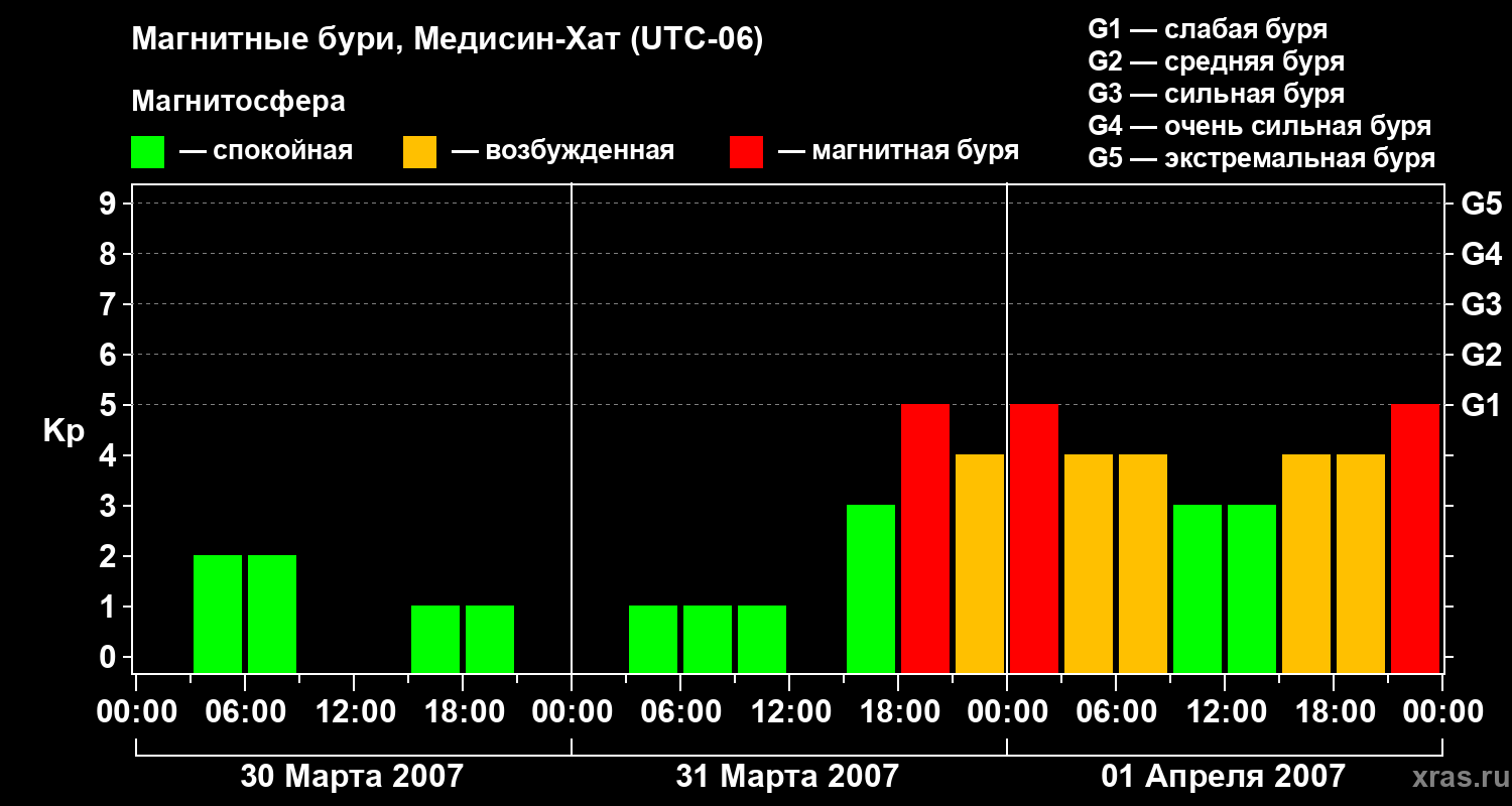 Магнитные бури в Медисин-Хате — 1 апреля 2007 года
