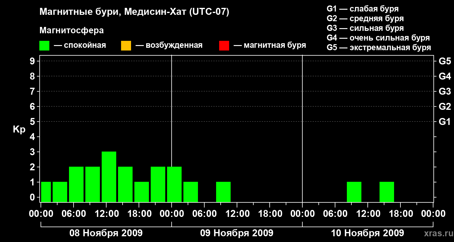Магнитные бури в Медисин-Хате — 10 ноября 2009 года