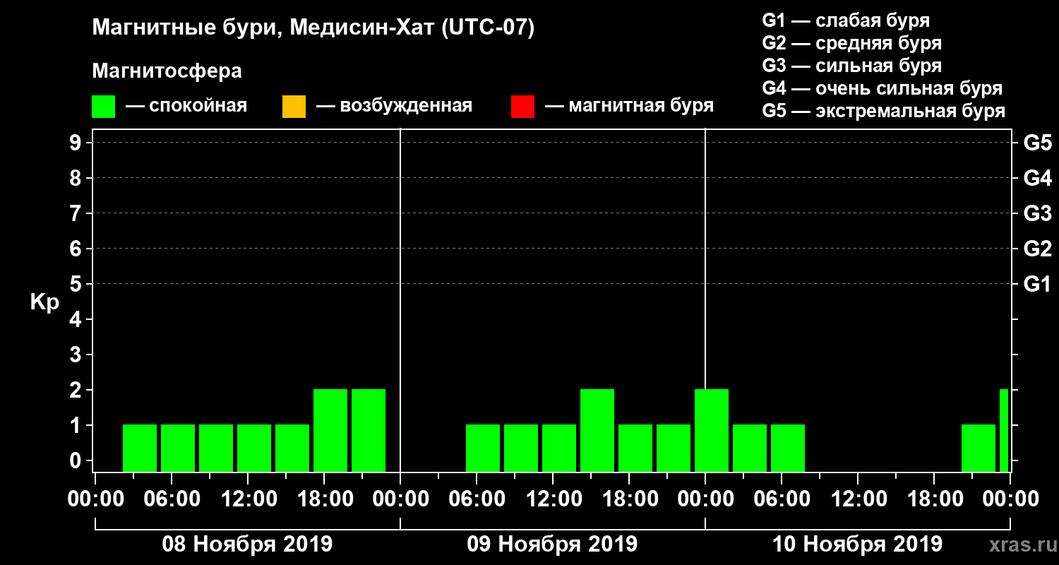 Магнитные бури в Медисин-Хате — 10 ноября 2019 года