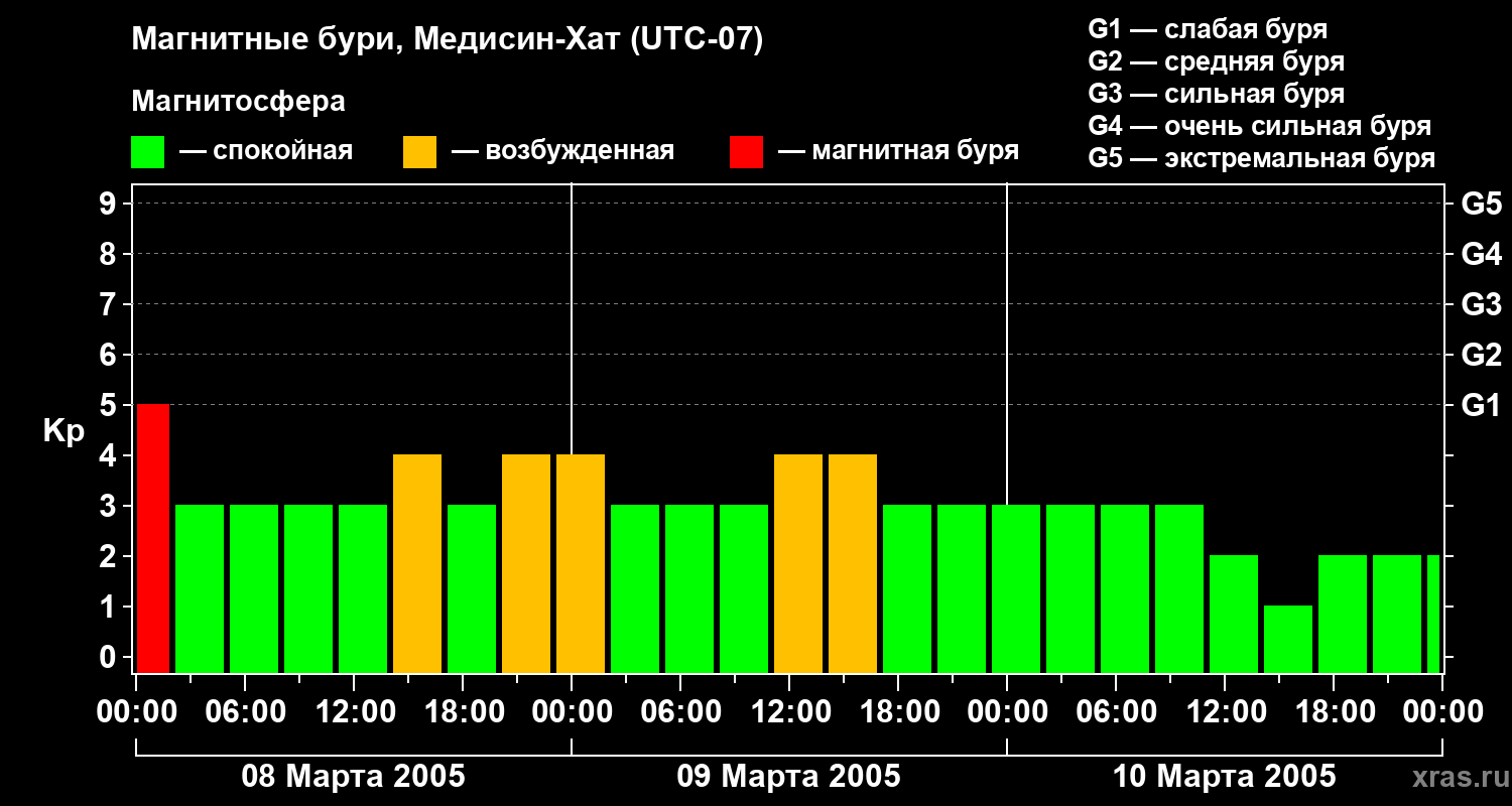 Магнитные бури в Медисин-Хате — 10 марта 2005 года