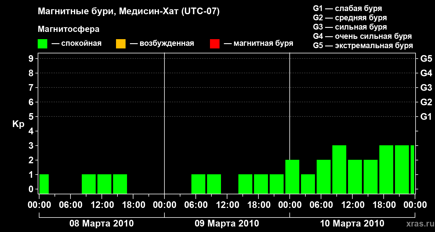 Магнитные бури в Медисин-Хате — 10 марта 2010 года