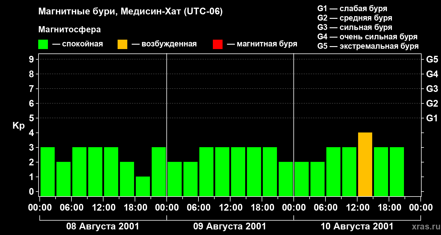 Магнитные бури в Медисин-Хате — 10 августа 2001 года