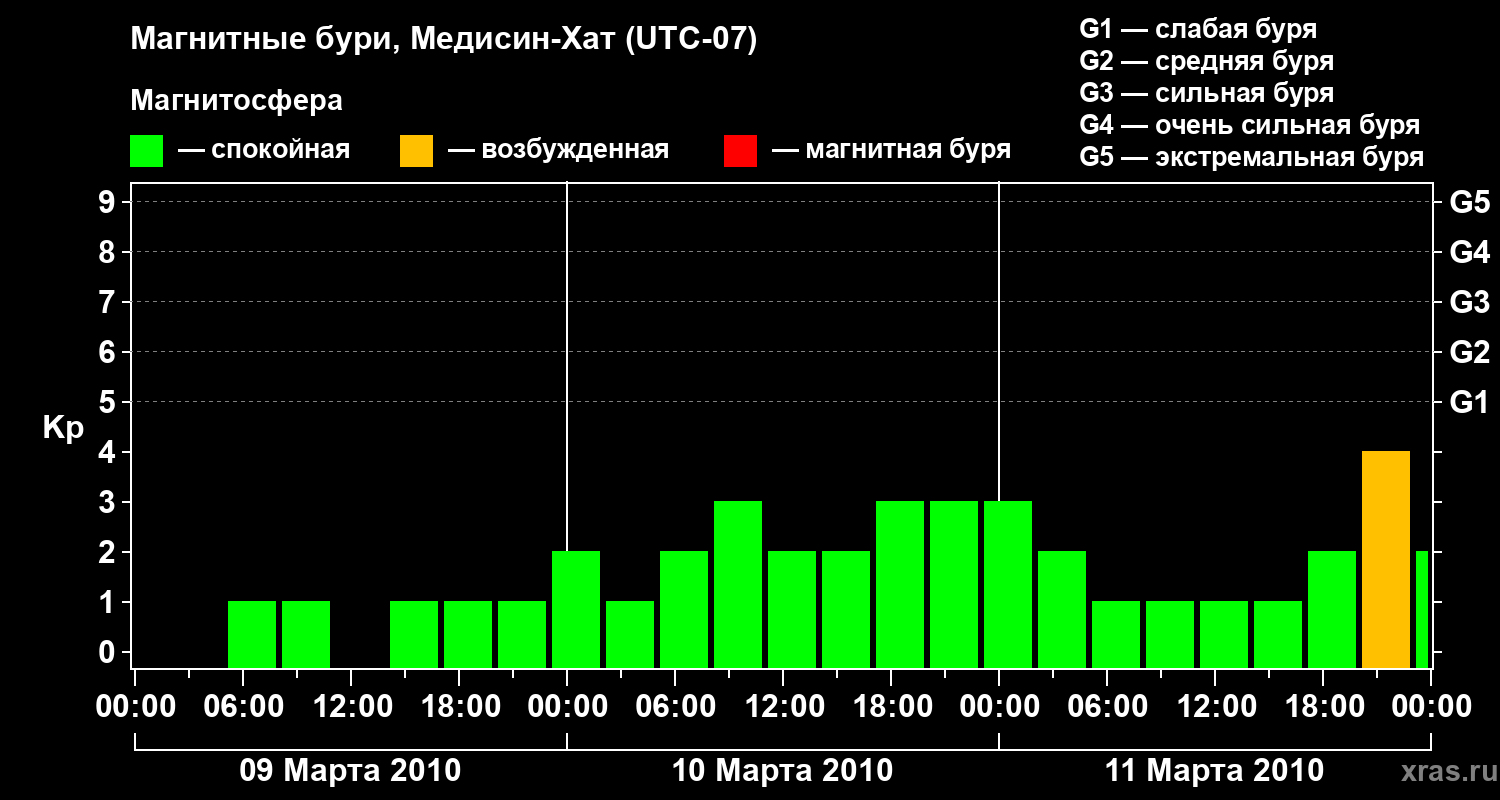 Магнитные бури в Медисин-Хате — 11 марта 2010 года