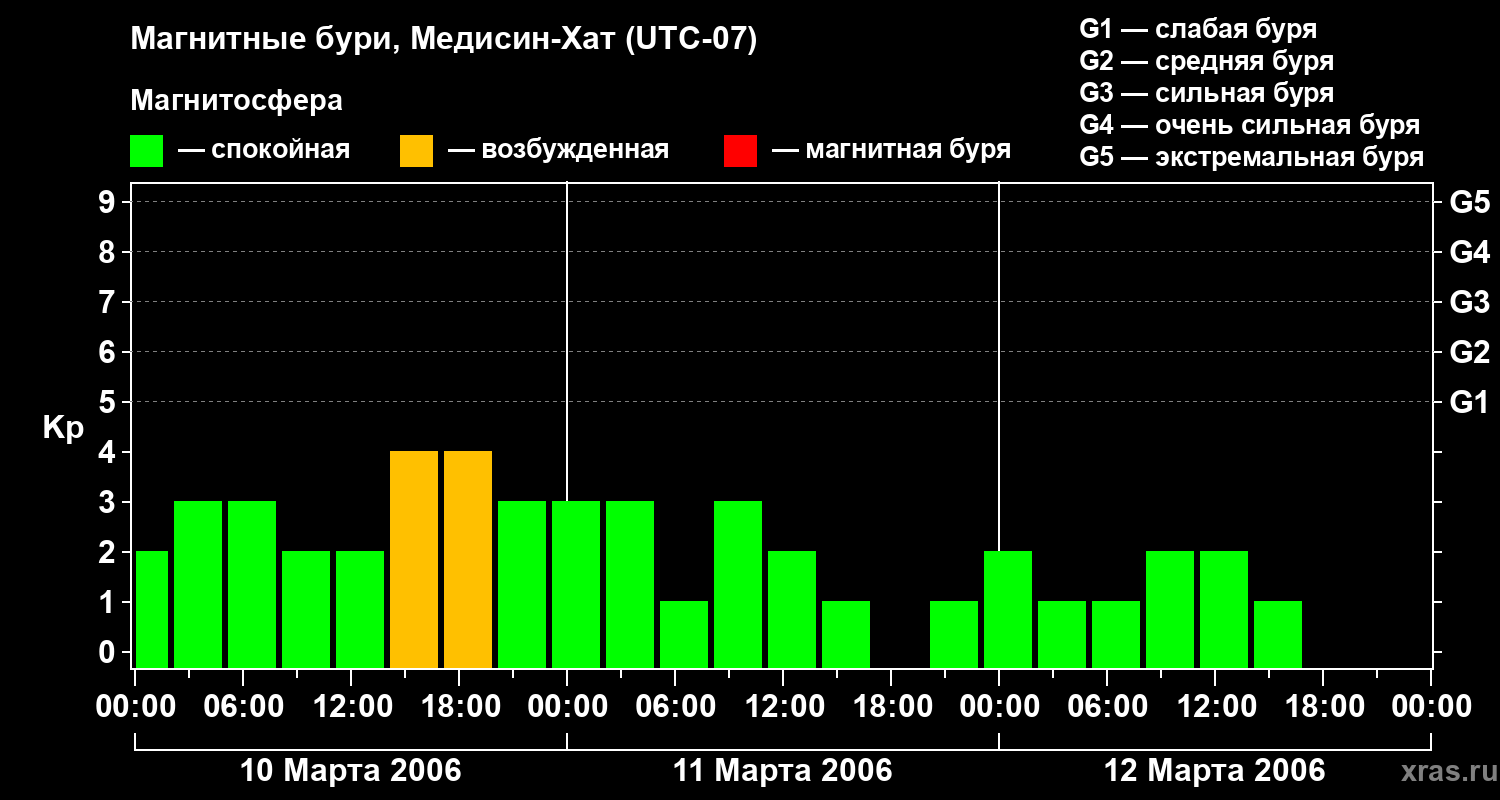 Магнитные бури в Медисин-Хате 12 марта 2006 года