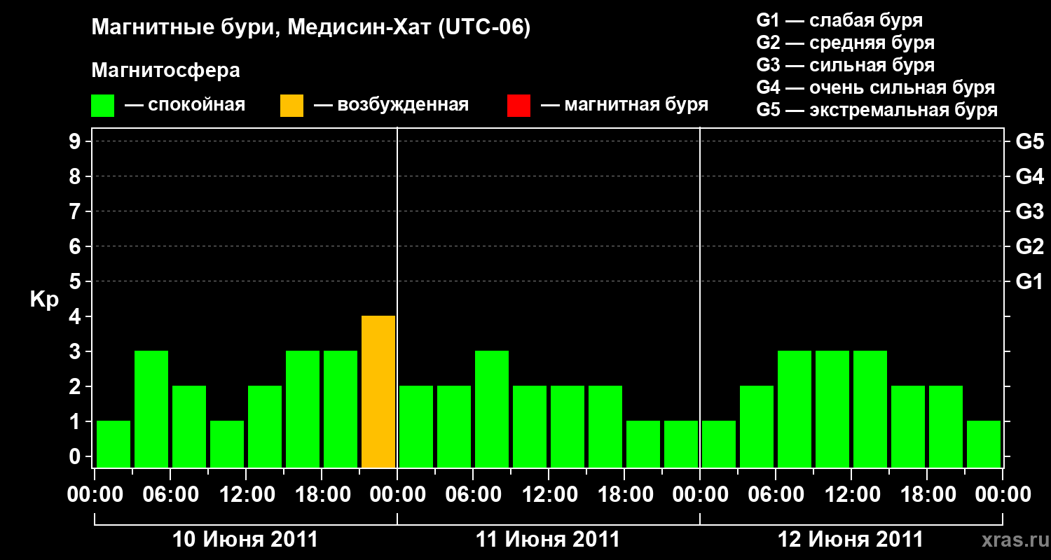 Магнитные бури в Медисин-Хате — 12 июня 2011 года