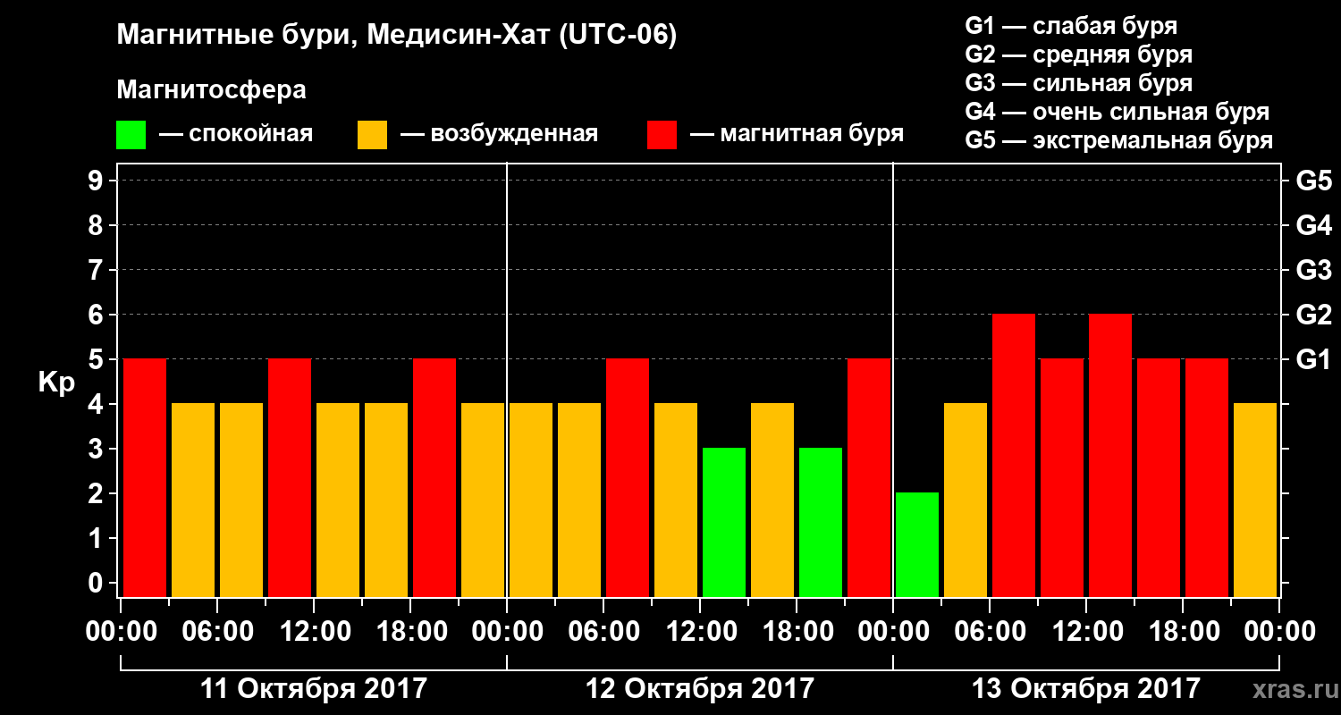 Магнитные бури в Медисин-Хате 13 октября 2017 года