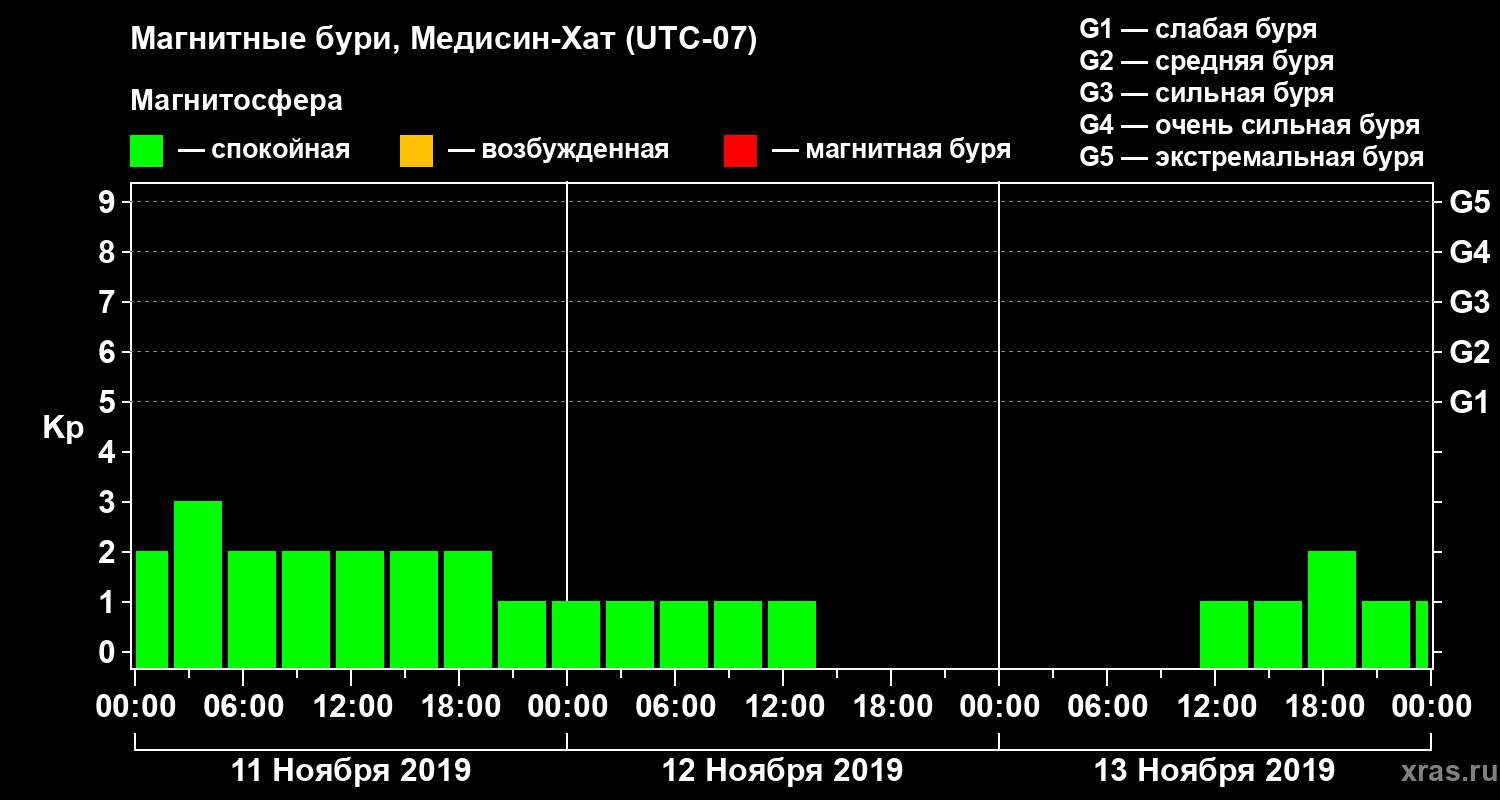 Магнитные бури в Медисин-Хате — 13 ноября 2019 года