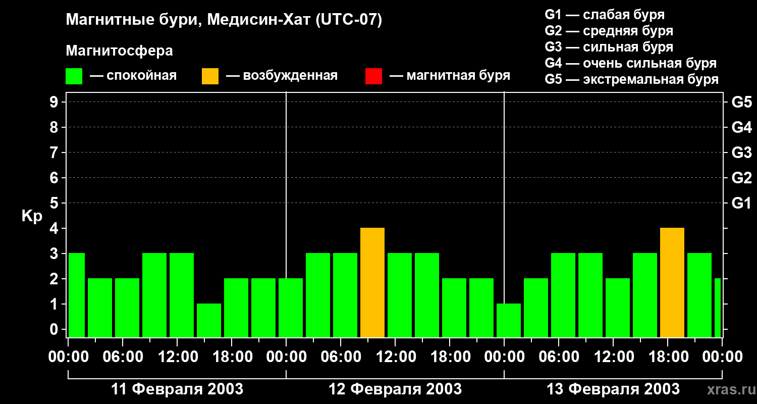 Магнитные бури в Медисин-Хате — 13 февраля 2003 года
