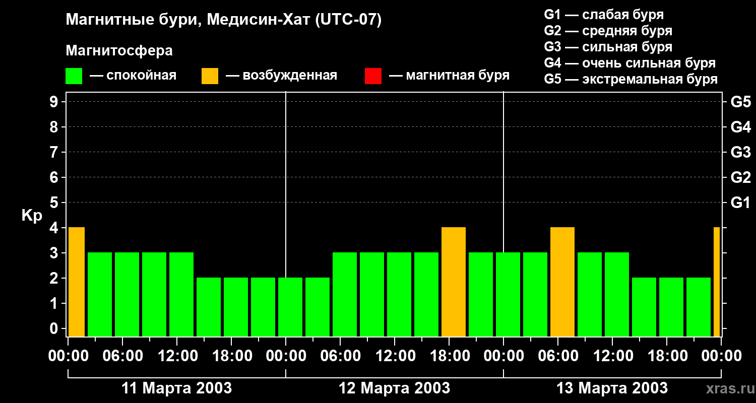 Магнитные бури в Медисин-Хате — 13 марта 2003 года