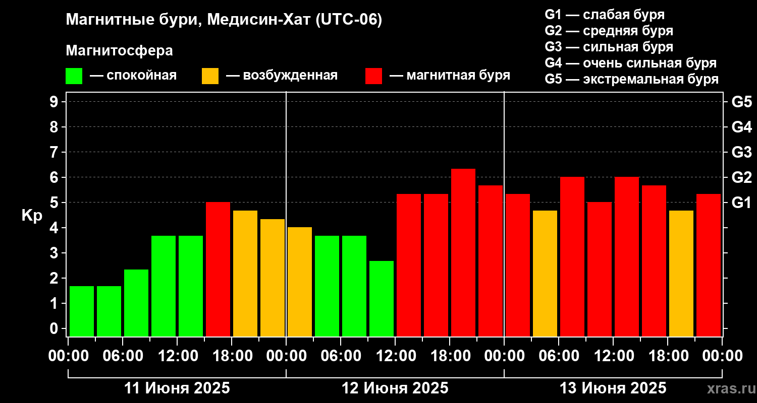 Магнитные бури в Медисин-Хате — 13 июня 2025 года