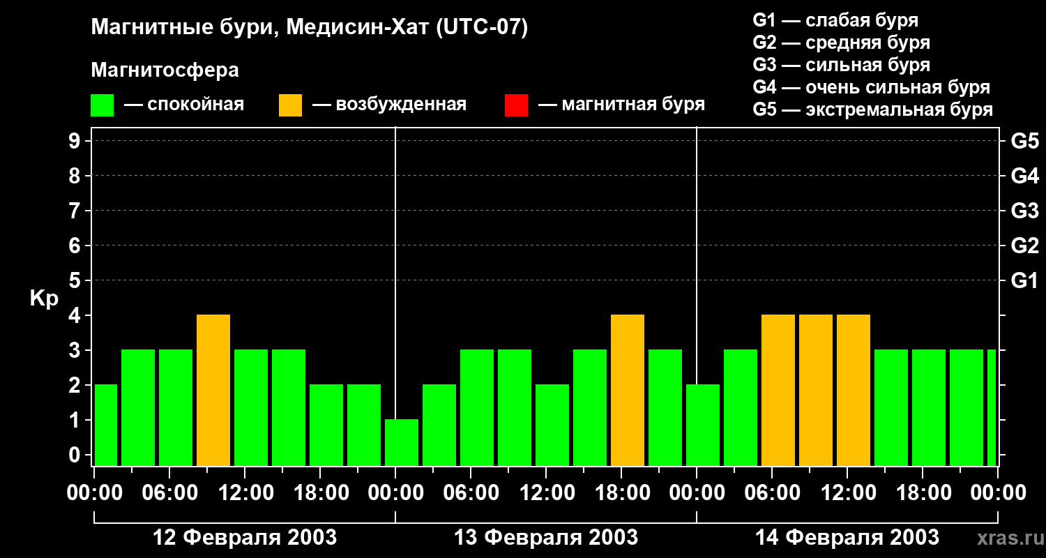 Магнитные бури в Медисин-Хате — 14 февраля 2003 года