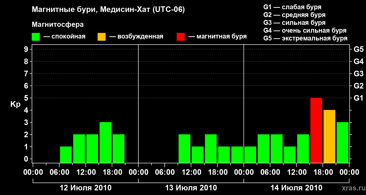 Магнитные бури в Медисин-Хате — 14 июля 2010 года