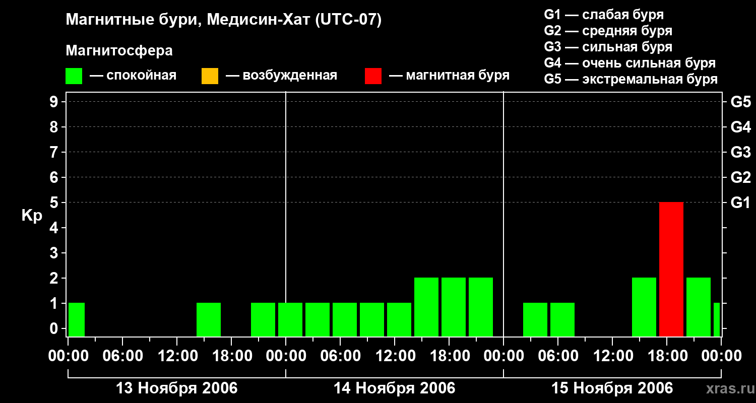 Магнитные бури в Медисин-Хате — 15 ноября 2006 года