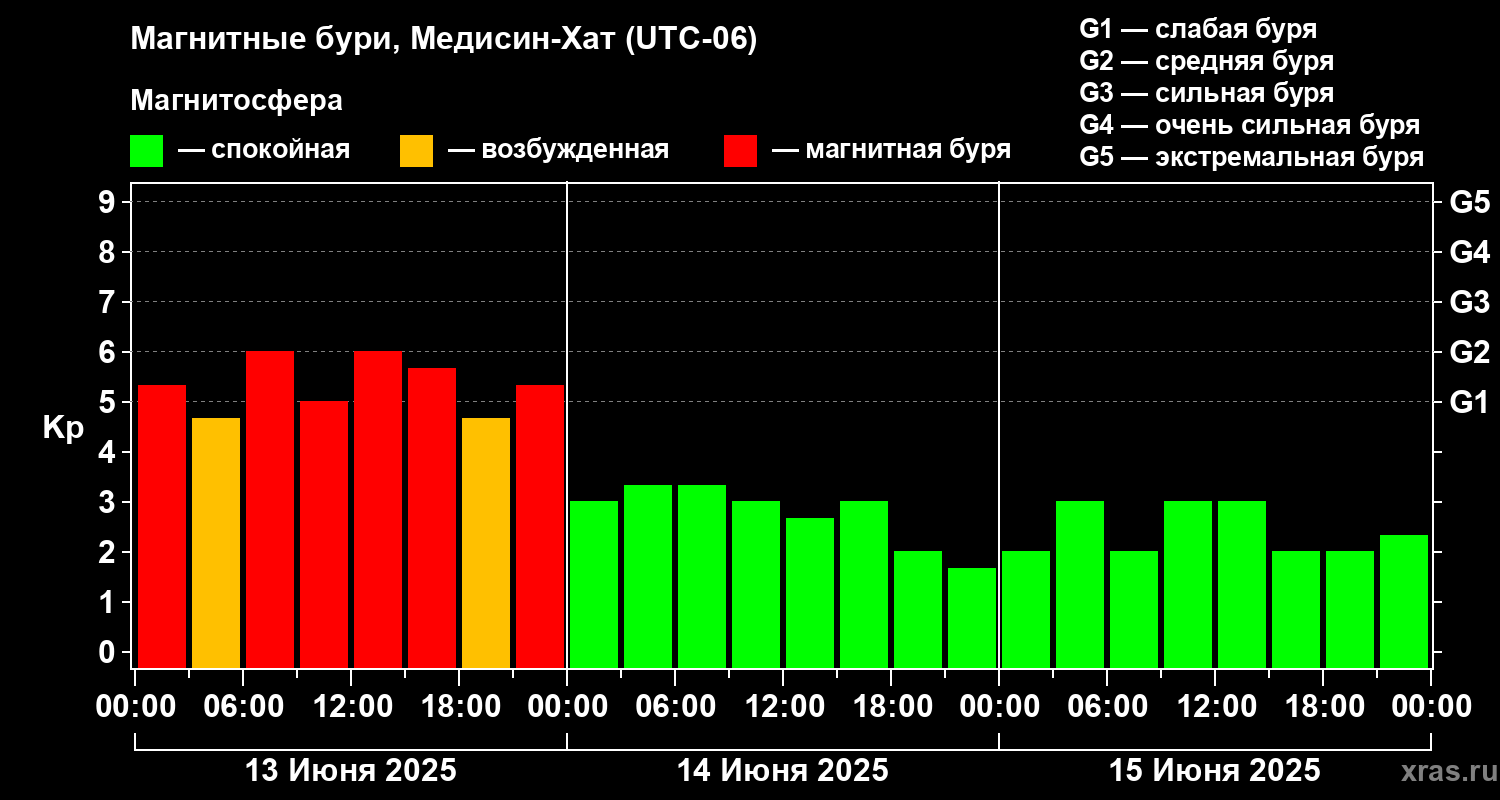 Магнитные бури в Медисин-Хате — 15 июня 2025 года