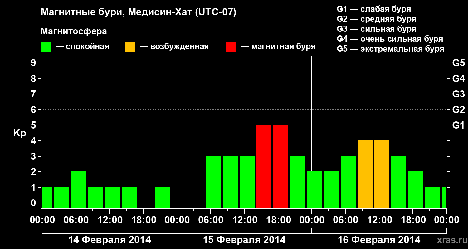 Магнитные бури в Медисин-Хате в феврале 2014 года