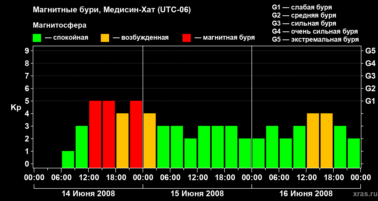 Магнитные бури в Медисин-Хате — 16 июня 2008 года