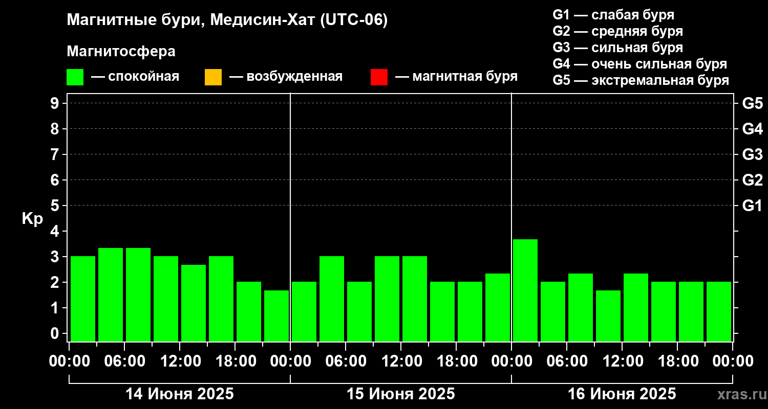 Магнитные бури в Медисин-Хате — 16 июня 2025 года