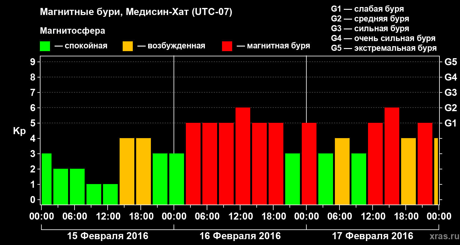 Магнитные бури в Медисин-Хате — 17 февраля 2016 года
