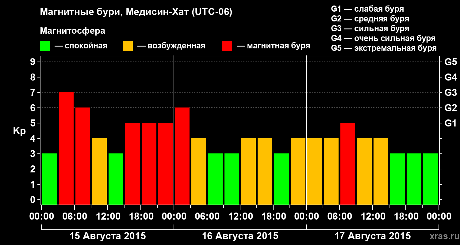 Магнитные бури в Медисин-Хате в августе 2015 года