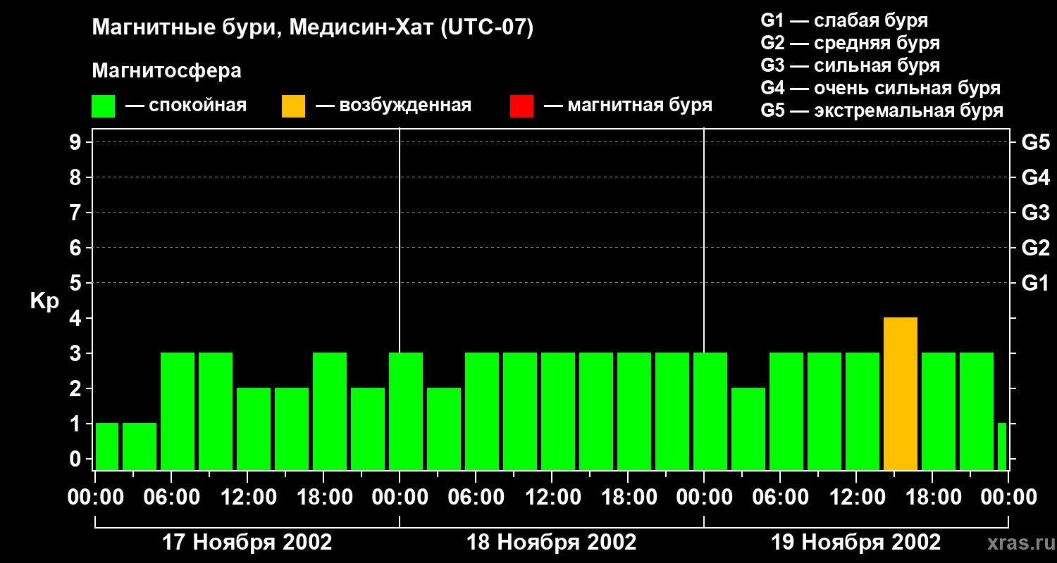 Магнитные бури в Медисин-Хате — 19 ноября 2002 года