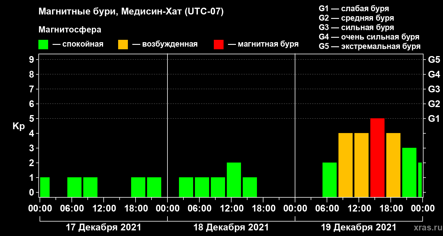 Магнитные бури в Медисин-Хате 19 декабря 2021 года