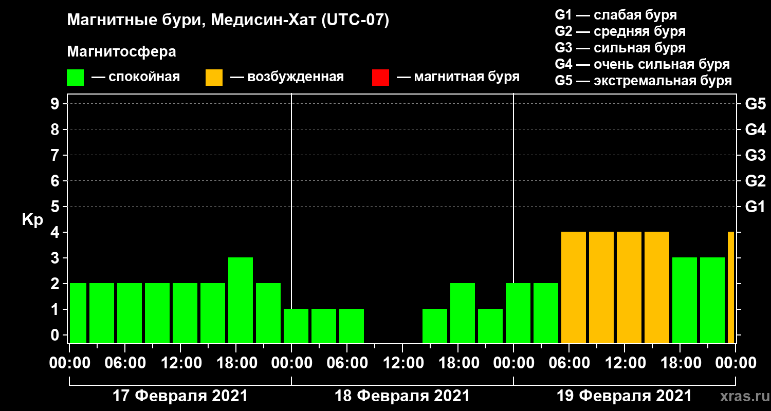 Магнитные бури в Медисин-Хате — 19 февраля 2021 года