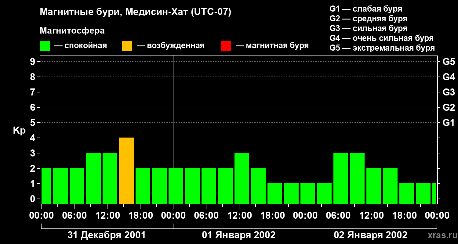Магнитные бури в Медисин-Хате 2 января 2002 года