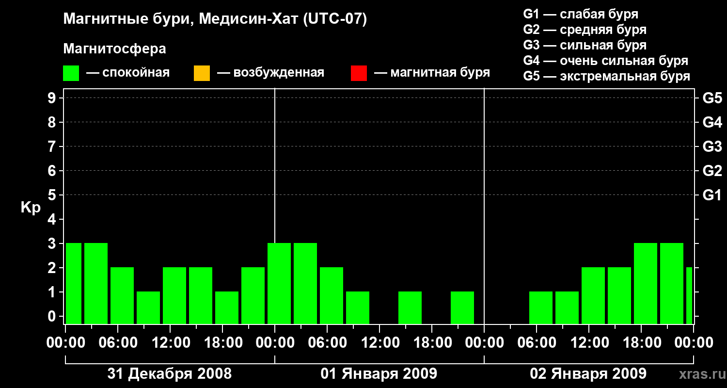 Магнитные бури в Медисин-Хате 2 января 2009 года