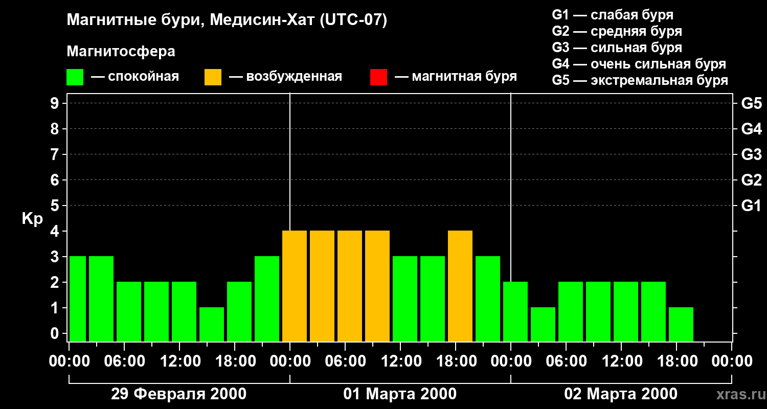 Магнитные бури в Медисин-Хате — 2 марта 2000 года