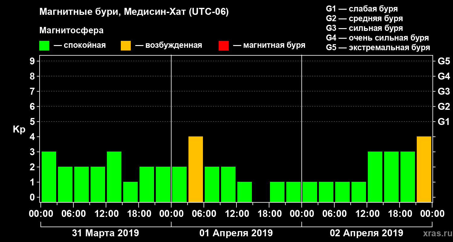 Магнитные бури в Медисин-Хате — 2 апреля 2019 года