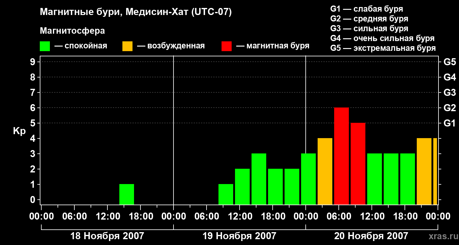 Магнитные бури в Медисин-Хате — 20 ноября 2007 года