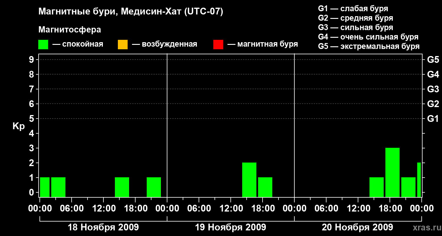 Магнитные бури в Медисин-Хате — 20 ноября 2009 года