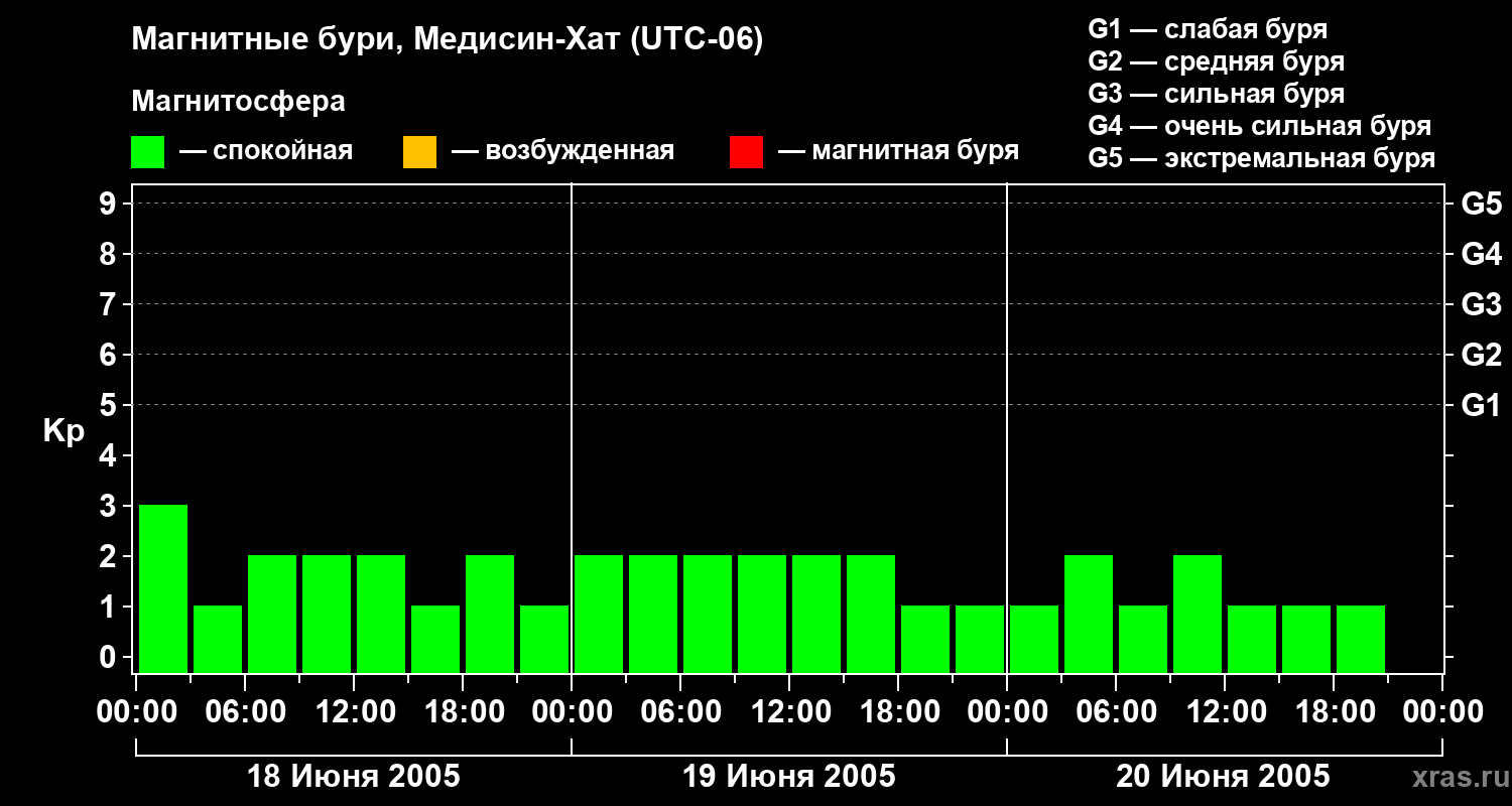 Магнитные бури в Медисин-Хате — 20 июня 2005 года