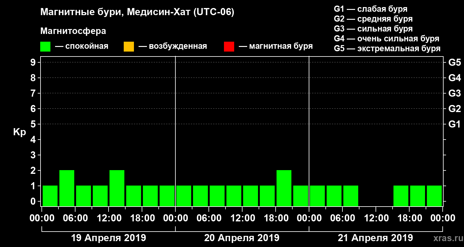 Магнитные бури в Медисин-Хате 21 апреля 2019 года