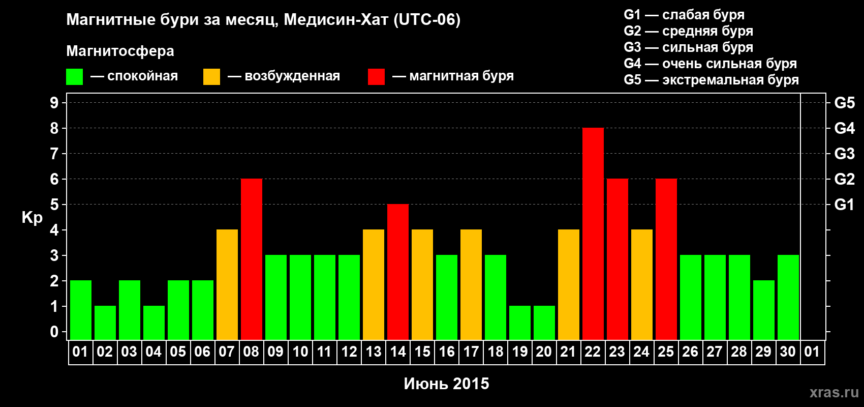 Магнитные бури в Медисин-Хате в июне 2015 года