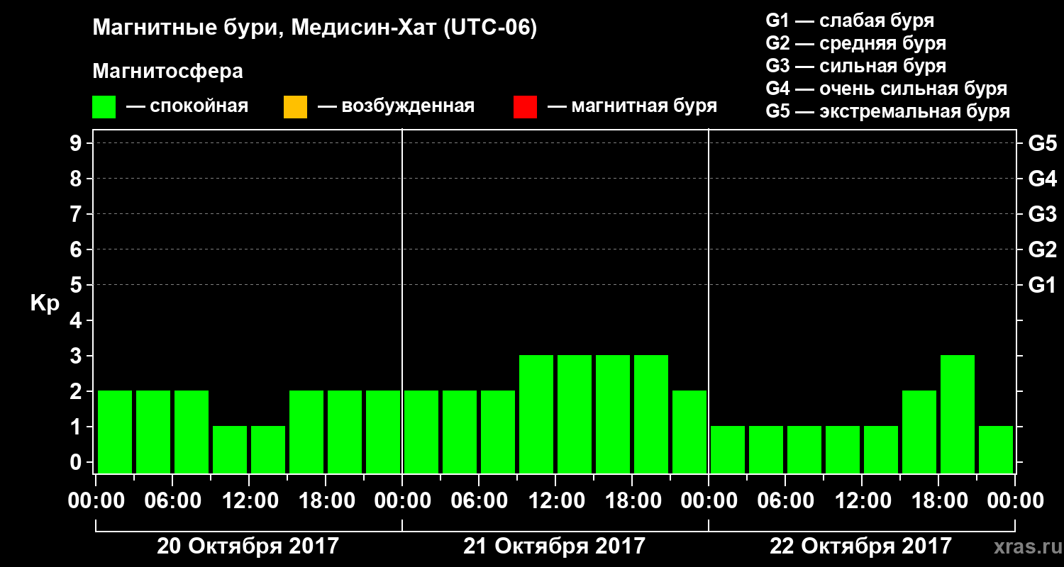 Магнитные бури в Медисин-Хате 22 октября 2017 года