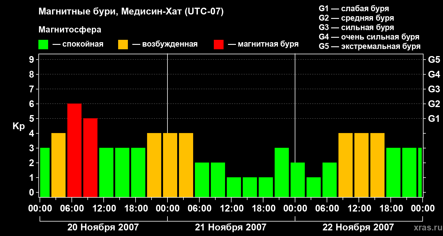 Магнитные бури в Медисин-Хате — 22 ноября 2007 года