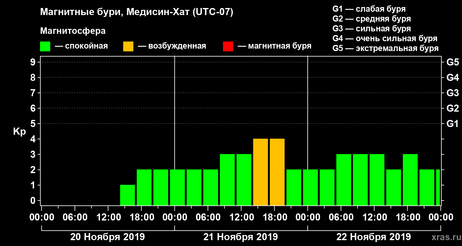 Магнитные бури в Медисин-Хате 22 ноября 2019 года