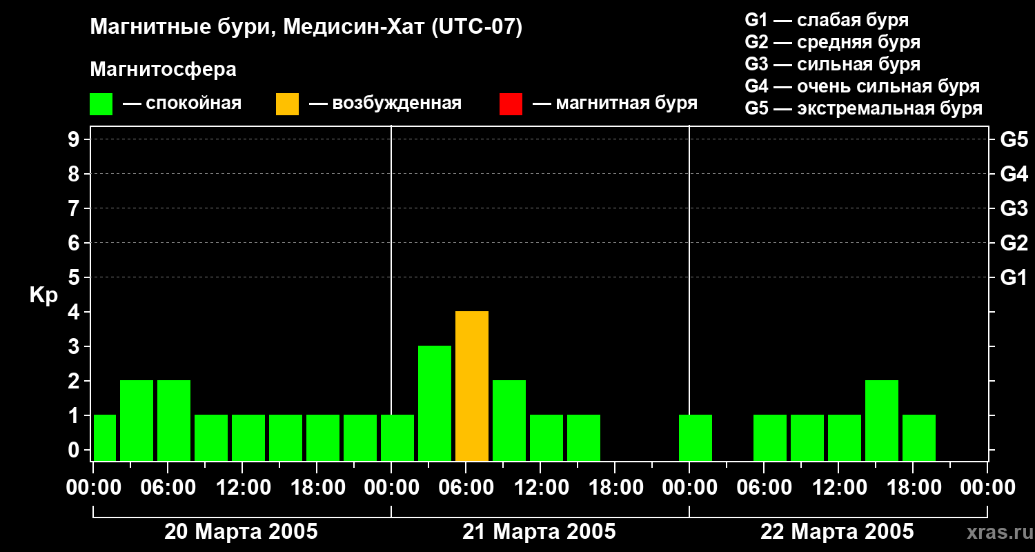 Магнитные бури в Медисин-Хате — 22 марта 2005 года