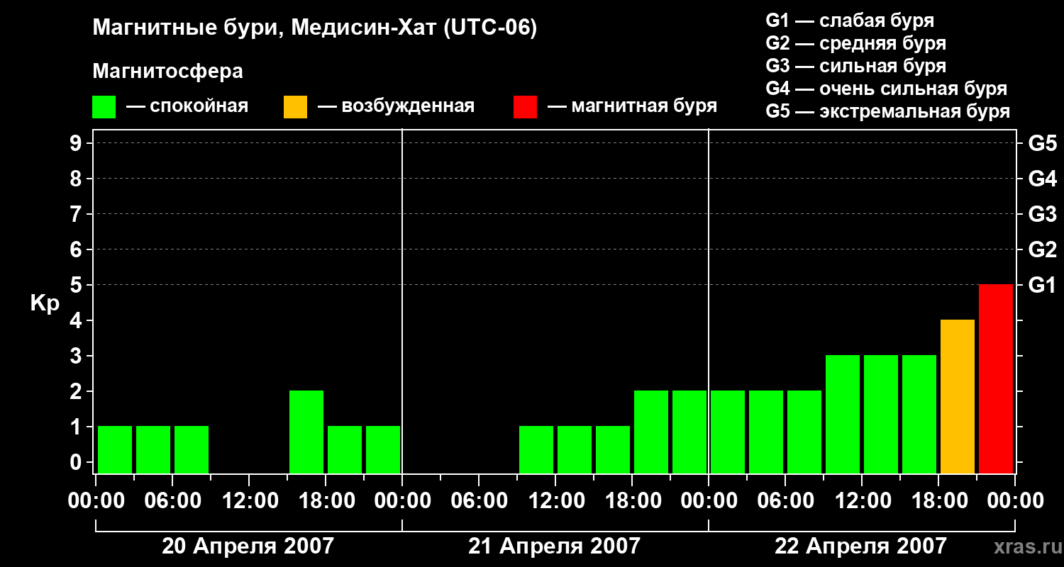 Магнитные бури в Медисин-Хате — 22 апреля 2007 года