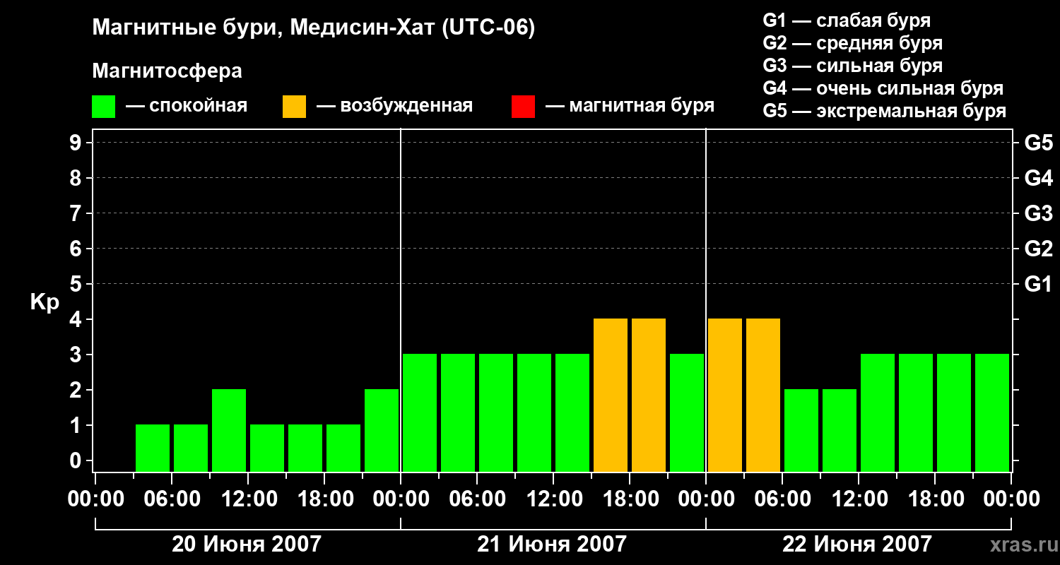 Магнитные бури в Медисин-Хате — 22 июня 2007 года