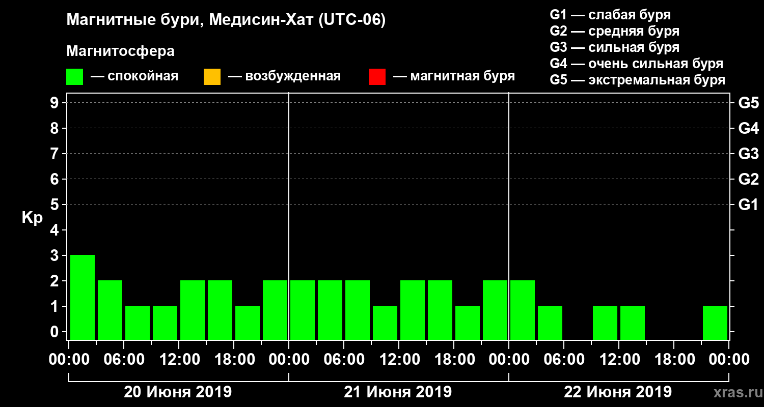 Магнитные бури в Медисин-Хате — 22 июня 2019 года