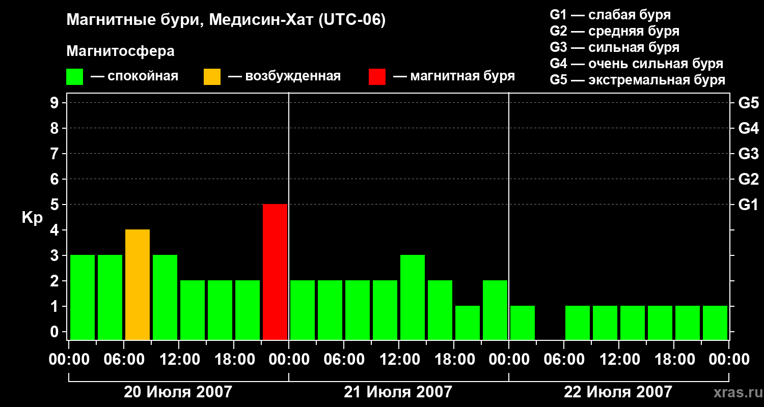 Магнитные бури в Медисин-Хате — 22 июля 2007 года