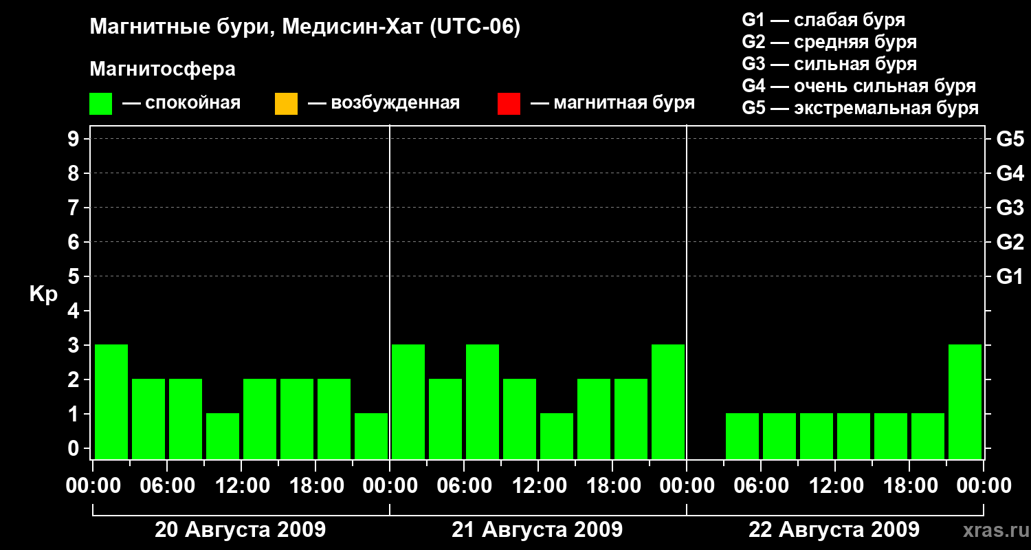 Магнитные бури в Медисин-Хате — 22 августа 2009 года