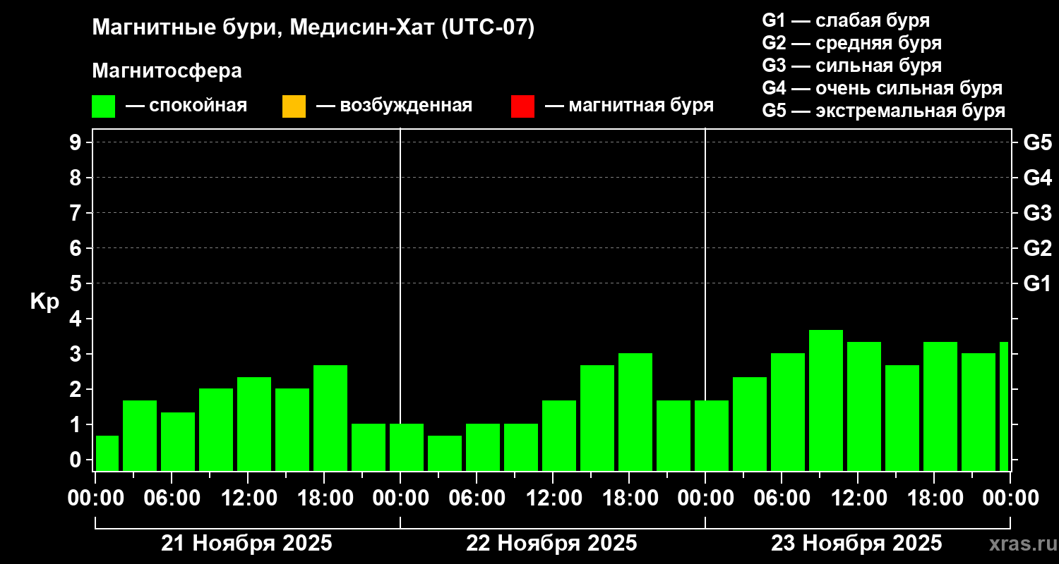 Магнитные бури в Медисин-Хате 23 ноября 2025 года