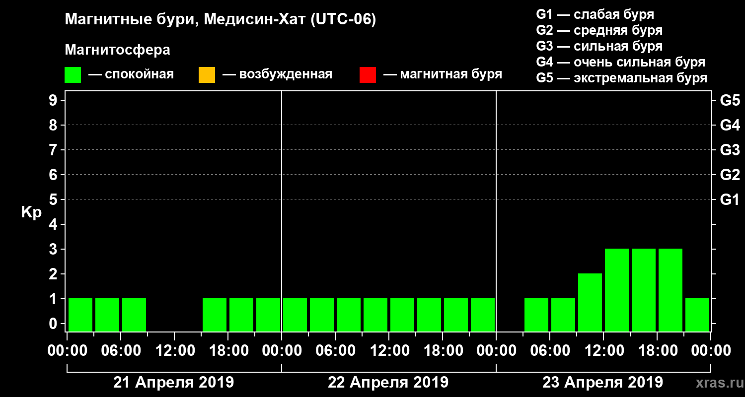 Магнитные бури в Медисин-Хате 23 апреля 2019 года