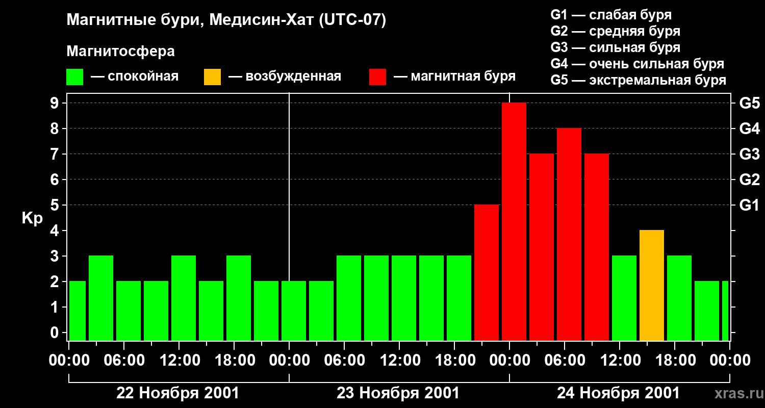 Магнитные бури в Медисин-Хате — 24 ноября 2001 года